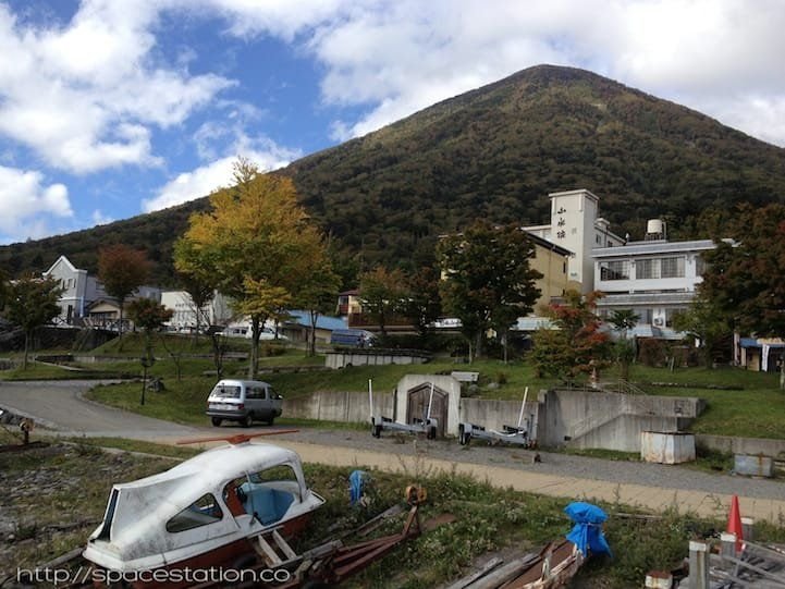 Looking northward from the boardwalk on Chuzenji Lake is the amazing Nantai Mountain, a great hike. >